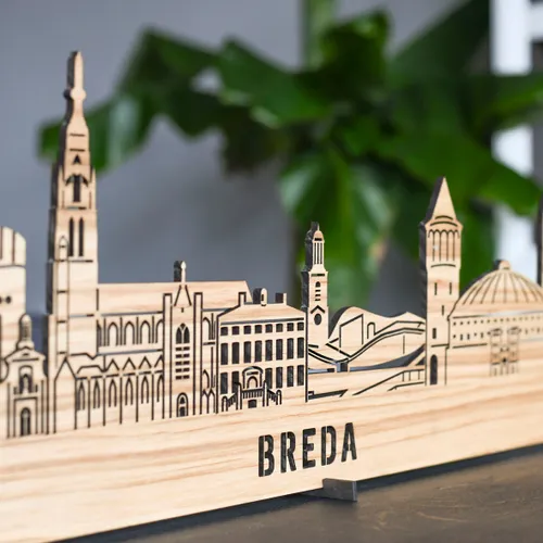 De skyline van Breda werd in 2016 door City Shapes geïntroduceerd en werd meteen een grote hit. Op de skyline zijn alle iconische gebouwen van de Parel van het Zuiden te vinden. Van de Grote Kerk en het Spanjaardsgat tot de Koepel, het Rat Verlegh Stadion en Kasteel Bouvigne. De skyline is verkrijgbaar in meerdere houtsoorten en formaten. Dit is een leuke muurdecoratie in elke Bredase huiskamer of slaapkamer!