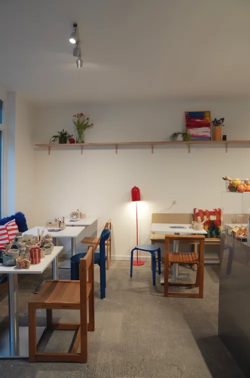 Flo Studio onderscheidt zich door de manier waarop keramiek een belangrijk onderdeel is van de café ervaring. “Bij ons drink je niet alleen uit een mok, je drinkt uit een mok die zelf gemaakt is. En dat idee wil ik verder doorvoeren: mensen laten ervaren hoe het is om zelf iets moois te maken,” zegt Floortje met enthousiasme. In de studio kun je eigen creativiteit de vrije loop laten terwijl je geniet van een koffie of ander drankje.